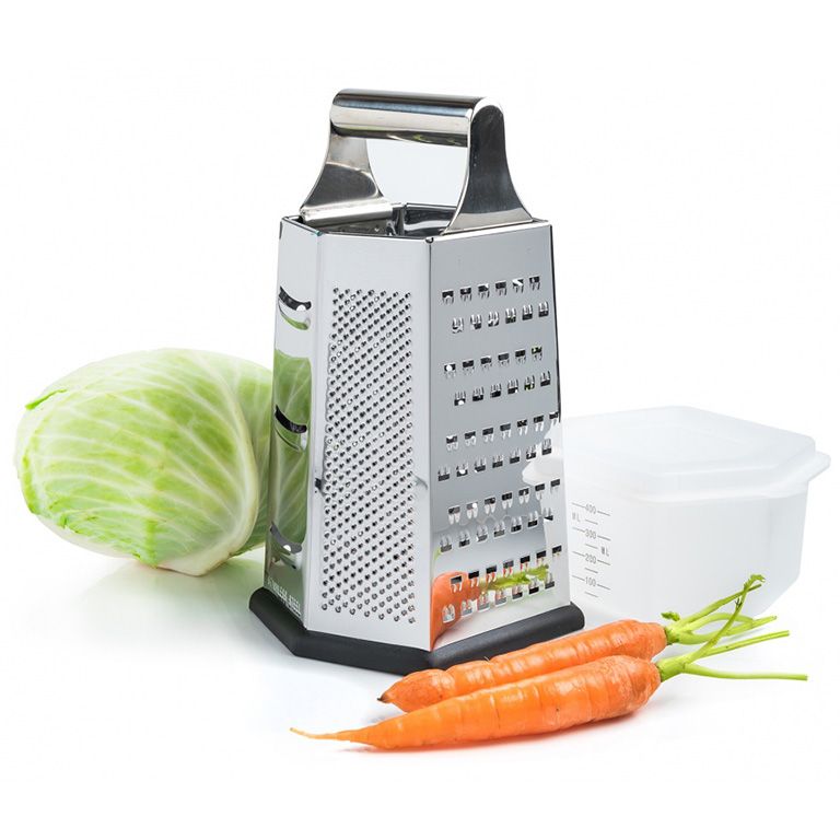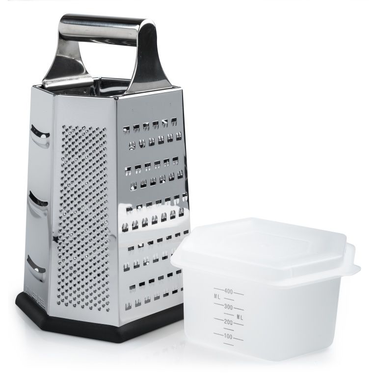 Терка изготовлена из высококачественной нержавеющей стали прочна и устойчива к деформации; обладает высокими антикоррозийными свойствами; устойчива к воздействию кислот и щелочей; не изменяет вкусовые качества, запах и цвет пищи, т.к. не вступает в реакцию с ее компонентами.