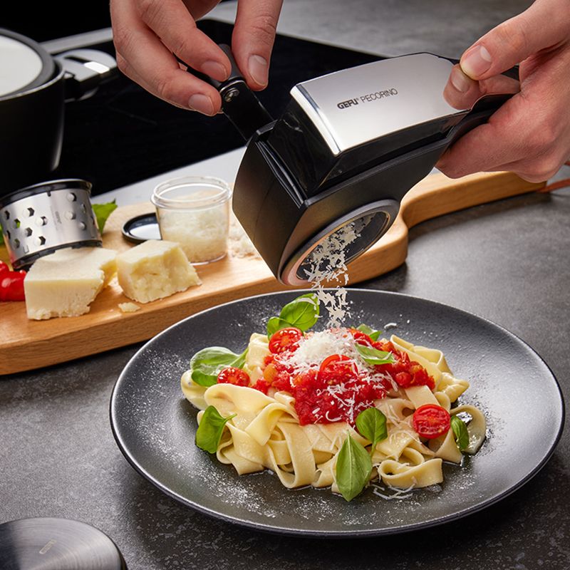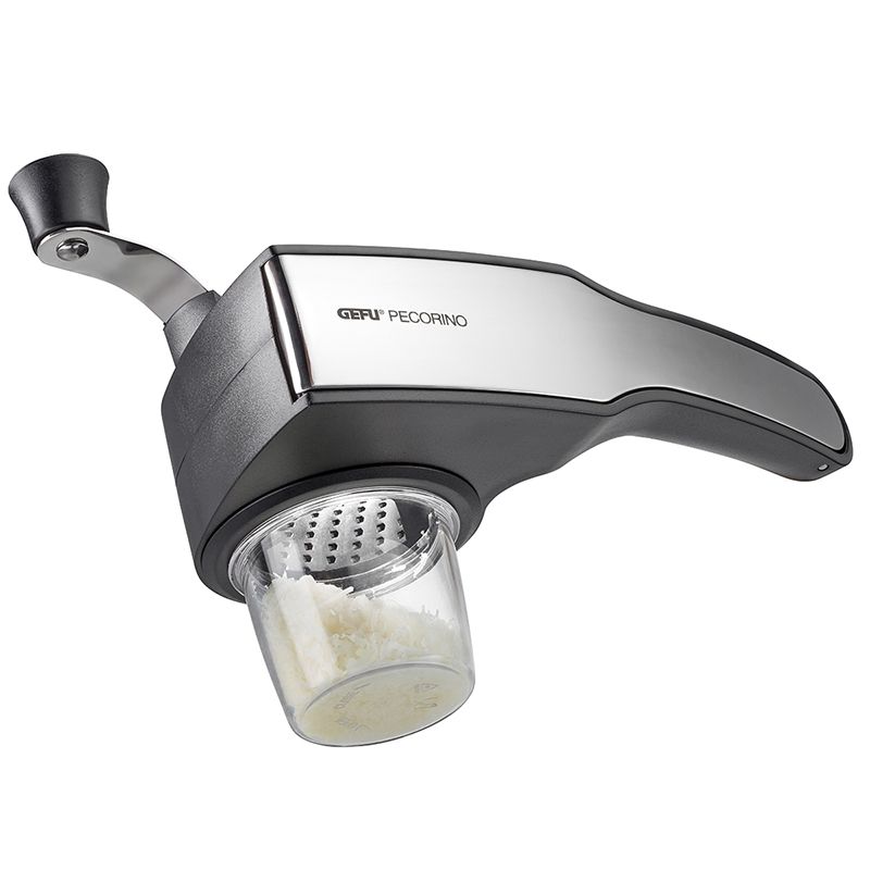 Роторная тёрка ПЕКОРИНО позволяет приготовить стружку или крошку из твердого сыра, шоколада, орехов или чеснока. Нужно просто поместить продукт отверстие и вращать ручку. Продукт расходуется полностью, без остатков. Стружка или крошка попадают непосредственно в емкость для хранения, которую затем можно закрыть герметичной крышкой, входящей в комплект.