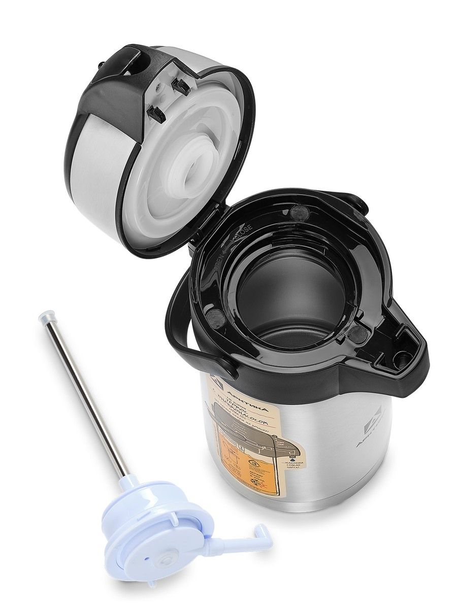 Выполнен из долговечной пищевой нержавеющей стали, благодаря помповому механизму удобно наливать напиток в несколько нажатий. Есть удобная ручка для переноски. Чтобы помпа не засорилась, рекомендуем заваривать листовой чай и травы в отдельной емкости. Для избежания протечек, не рекомендуется транспортировать в горизонтальном положении.Гарантия на вакуум – 5 лет