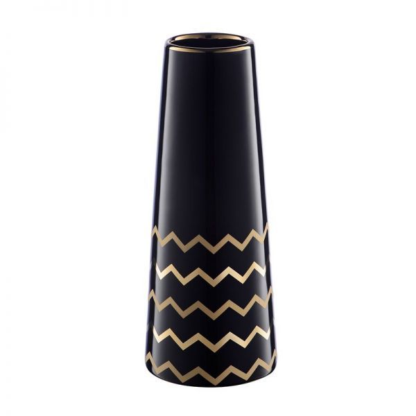 Ваза Арт Деко 25 см, черный с золотом, декоративная