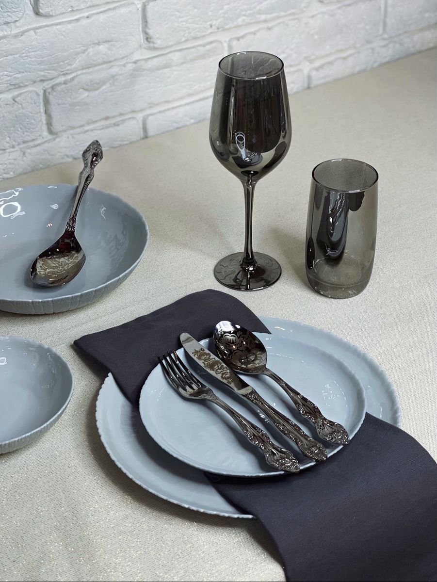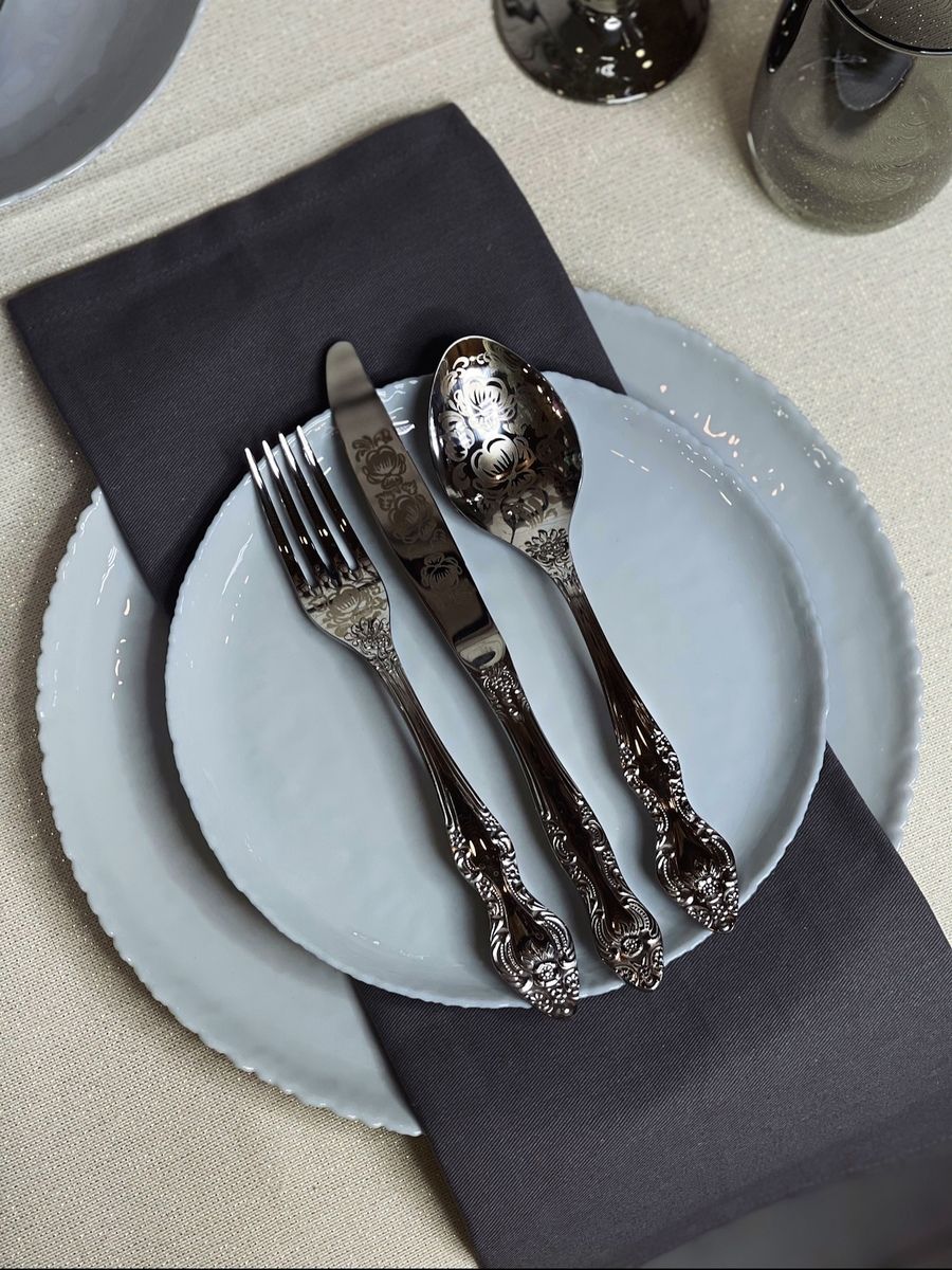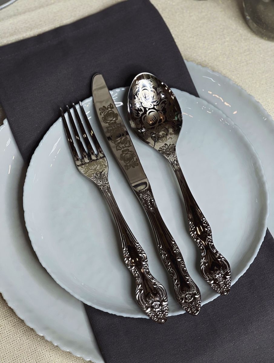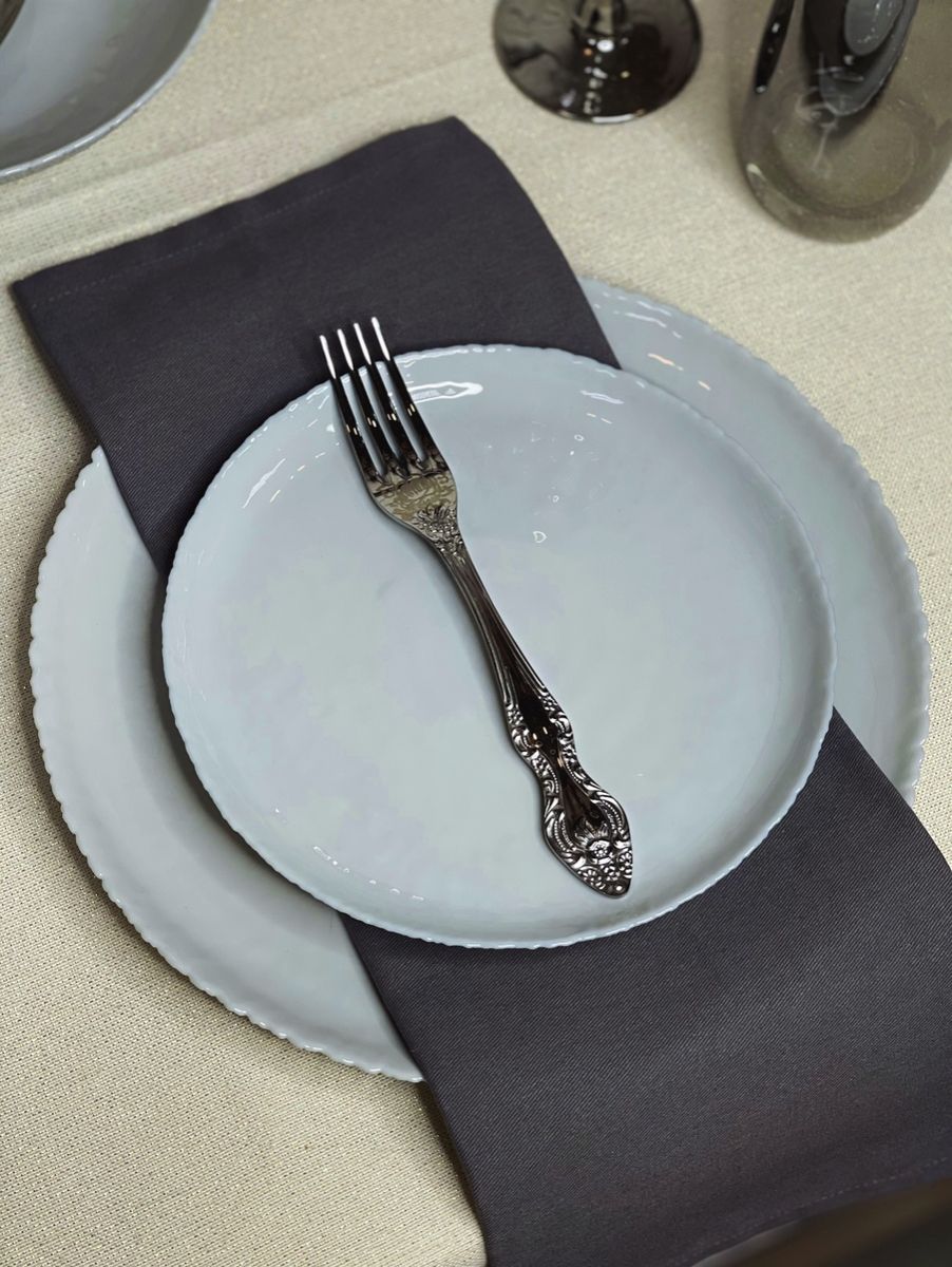 Вилка имеет фигурную ручку и роспись, выполнена в классическом стиле и подойдет к любому столовому сервизу.